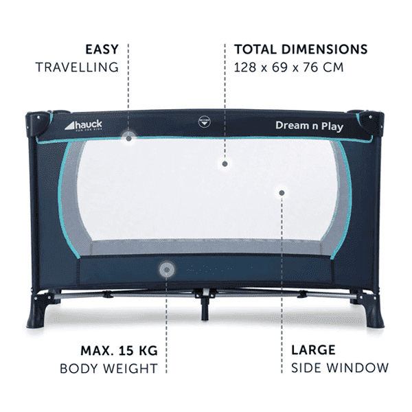 Ideal für den Familienurlaub: Das HAUCK Dream N Play Plus Reisebett vereint Schlafplatz, Laufstall und Spielhaus in einem und bietet Ihrem Kind (bis 15 kg) Tag und Nacht Geborgenheit. Die 5 cm starke Komfort-Faltmatratze und zwei weiche Spannbettlaken gehören bereits zum Set, damit sich Ihr Nachwuchs in Hotel, Ferienwohnung oder bei Freunden sofort wie zu Hause fühlt. Dank des cleveren Faltmechanismus ist das Leichtgewicht in wenigen Handgriffen aufgestellt und ebenso fix wieder kompakt zusammengefaltet. Verstaut in der farblich abgestimmten Transporttasche passt es platzsparend in jeden Kofferraum. Perfekt, wenn Sie nach der Landung direkt weiterreisen.